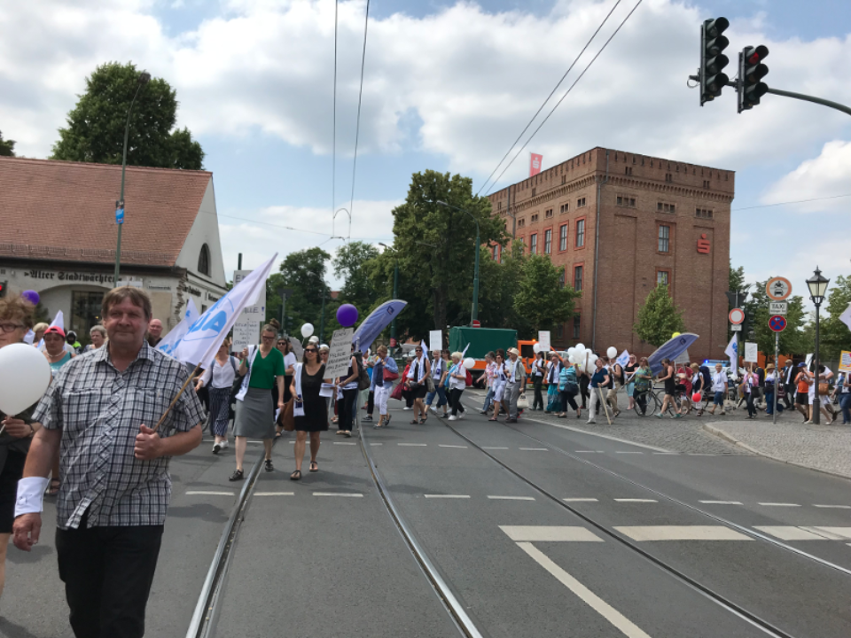 Generell machte die Teilnehmerzahl an der Demonstration deutlich, dass die in unserer Gesellschaft bestehende Zurückhaltung bezüglich eines Mobilisierungspotentials gegen Armut auffallend ist und im Wesentlichen auf die Individualisierung sozialer Ungleichheit beruht. Umso bemerkenswerter ist die, im Verhältnis zu anderen großen Verbänden und Vereinen, überwiegende Teilnahme der Mitglieder des Arbeitslosenverbandes. Und dafür einen großen Dank an unsere Ortsvereine und Regionalverbände und insbesondere an die Mitglieder, die sich bei großer Hitze auf den Weg nach Potsdam gemacht haben um dort an der Demonstration teilzunehmen.